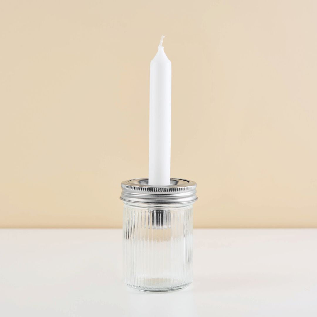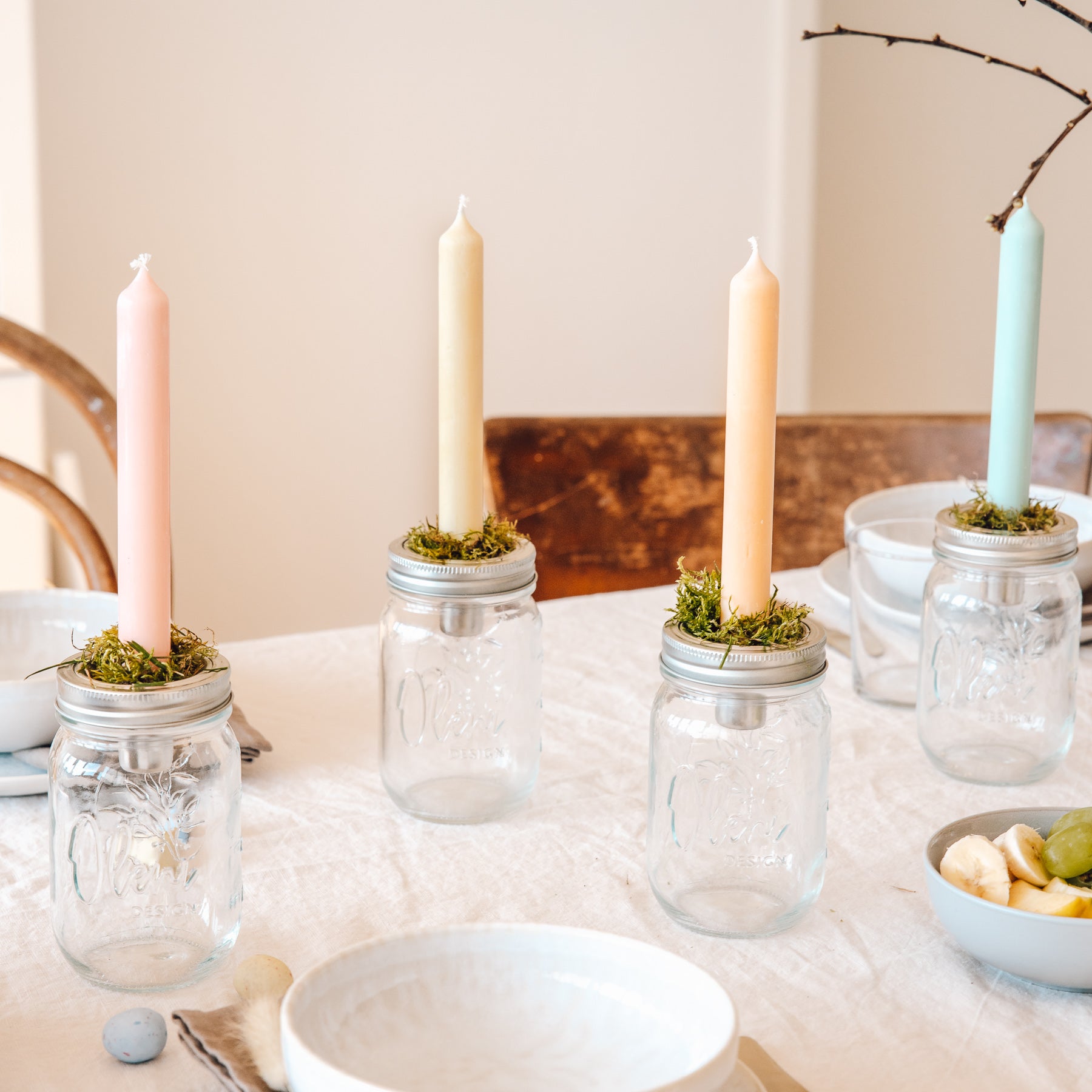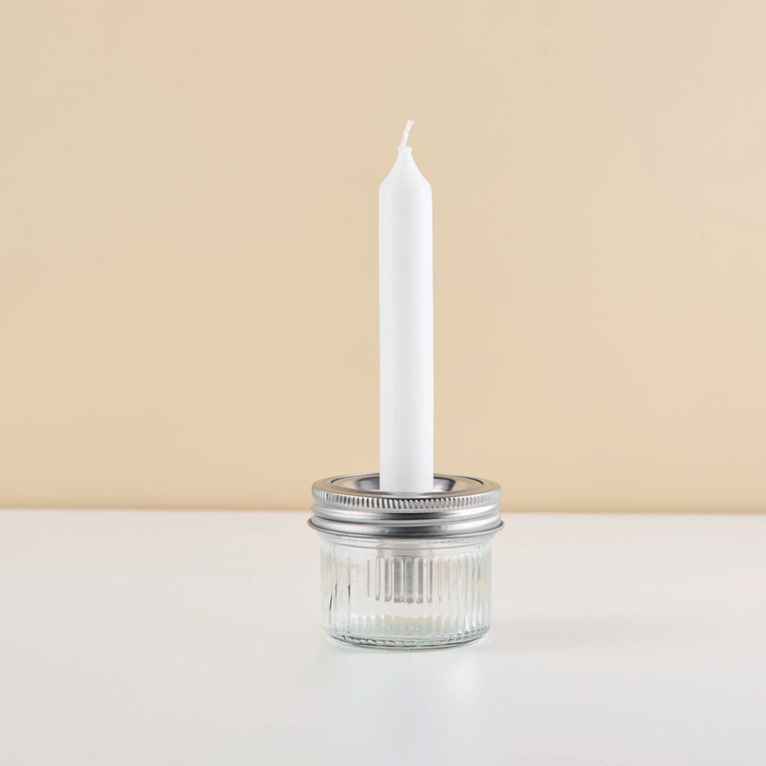 Combined with the candle holder, the Mason Jar glass becomes a decorative glass. Suitable decorations can be placed in the bottom of the glass, such as dried flowers, Easter eggs or olive branches. Pretty on the balcony or dining table in the living room.