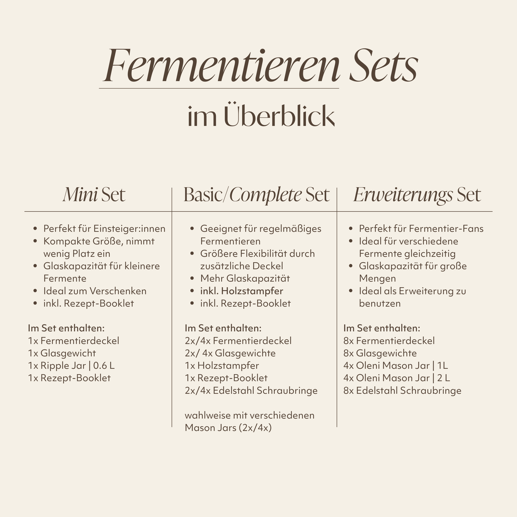 Do you want to ferment but don't know how to get started? With our starter set, fermenting and pickling is easy and success is absolutely guaranteed! Whether sauerkraut , cucumbers , carrots or garlic - with our Mason Jar Fermentation Kit you can easily pickle and preserve vegetables. The best thing about it, however, is the taste - exceptional, aromatic vegetables full of vitamins! The nutrients remain completely intact or are transformed through the fermentation process.