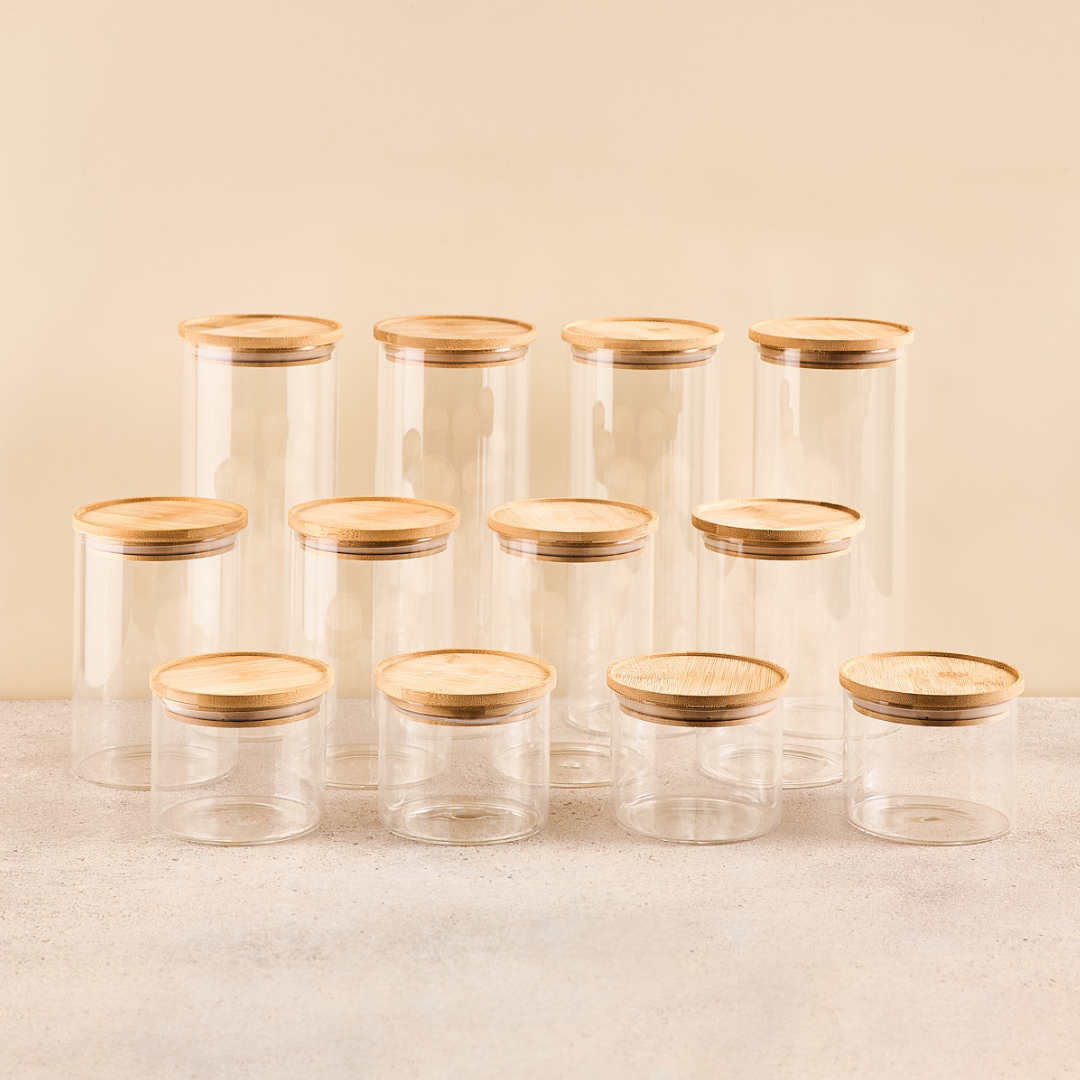 - 12 storage jars in 3 different, matching sizes (S, M, L)