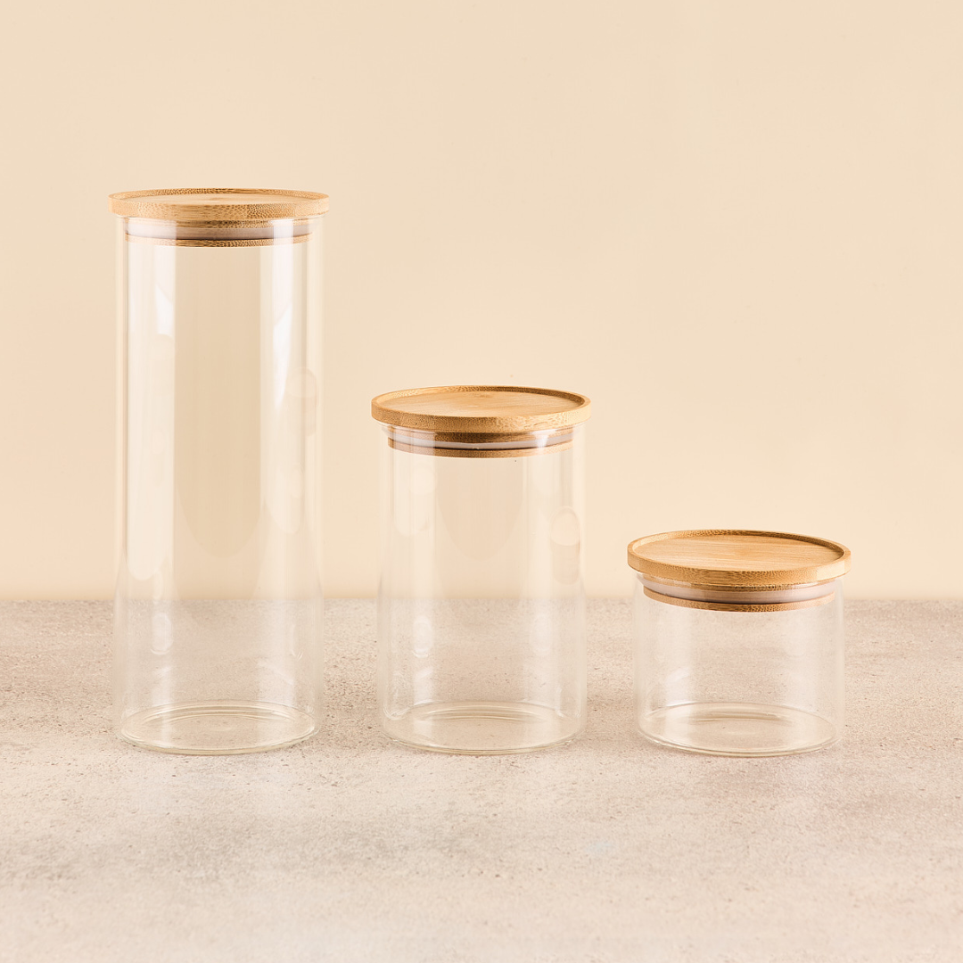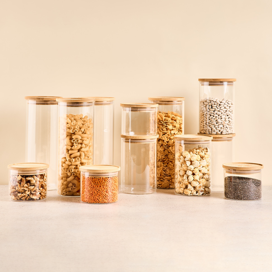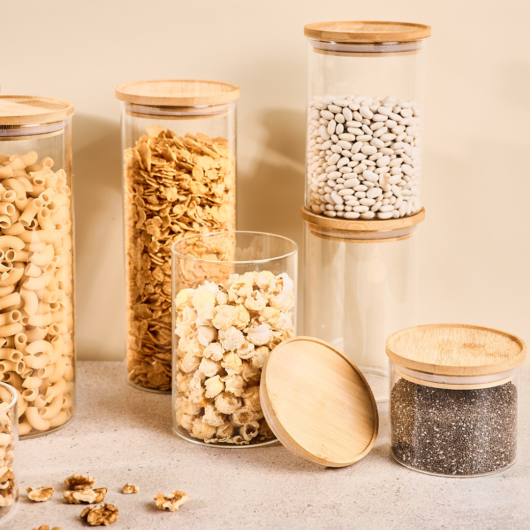 The high-quality glass seals your supplies airtight thanks to the untreated bamboo lid with silicone seal - so your supplies in the glass stay fresh for a long time.stacking storage jars