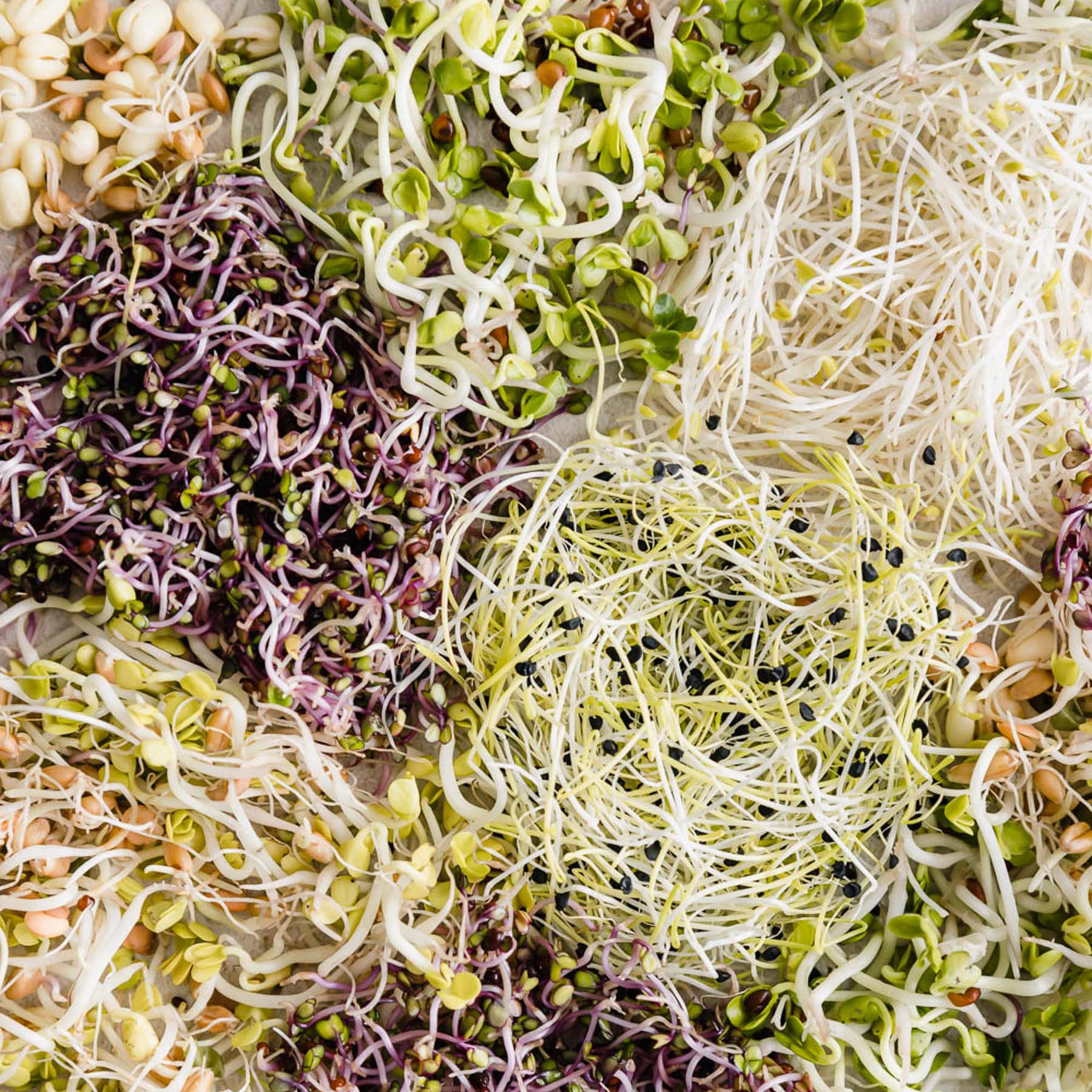 RED CABBAGE - Red cabbage sprouts are fresh, slightly sour, generally mild in taste and reminiscent of cabbage. They taste great in combination with fruit and salads, go excellently with all types of cheese and also give soups, dips and much more that special touch. The beautiful red color also makes them ideal for decorating many dishes. The sprouts have a high content of vitamins A, B1, B2, B3, C and a large amount of fiber , important minerals and mustard oils. Red cabbage sprouts also contain many natural antioxidants and trace elements.