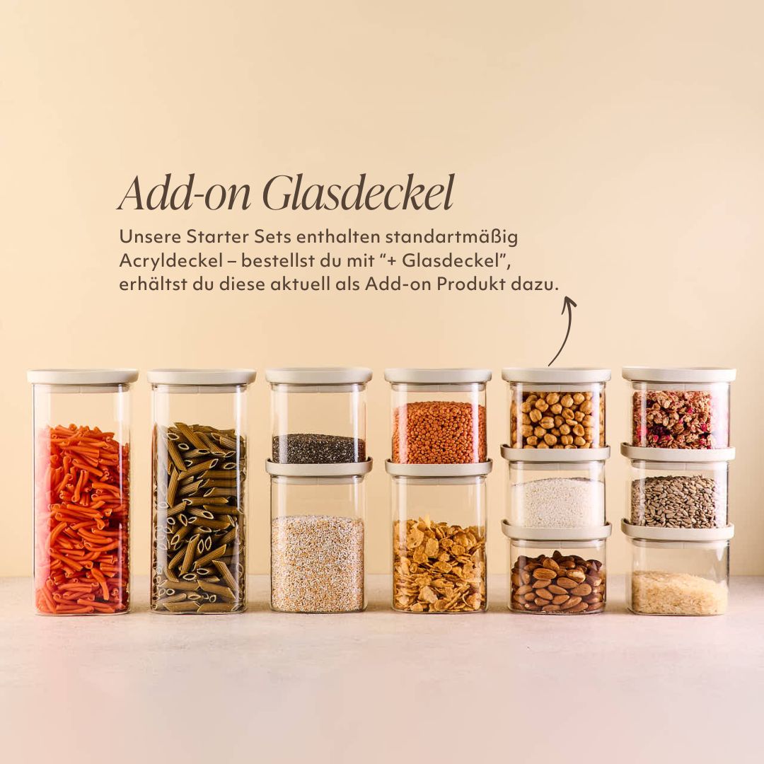 Stapelbar, stilvoll & vielseitig – das Vorratsschrank Starter Set Midi | Eckig mit Glasdeckel-Upgrade