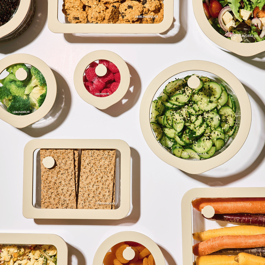 Unsere Frischhaltedosen machen Schluss mit matschigem Obst, labbrigem Salat und vergessenen Resten. Das integrierte Ventil drückt die überschüssige Luft raus – und hält wertvolle Nährstoffe, Textur und Geschmack länger im Glas. Mit unseren Frischhaltedosen bleiben deine Zutaten und dein Essen länger frisch – sichtbar, spürbar und clever aufbewahrt.