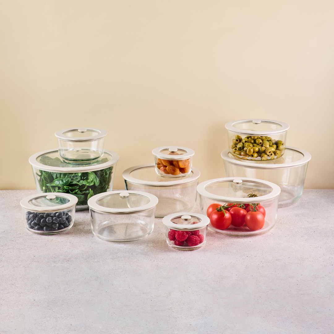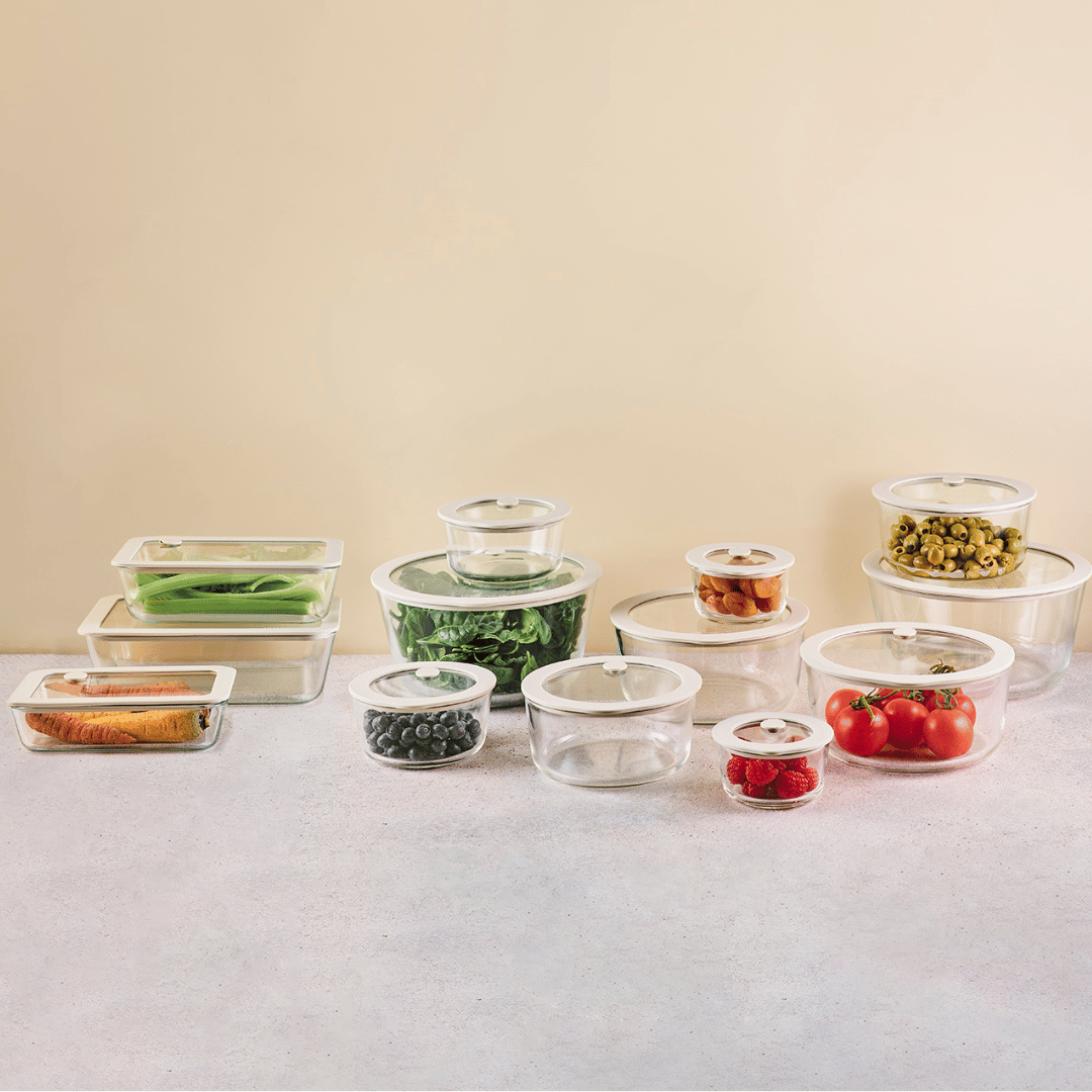 Unsere Frischhaltedosen sind nicht nur perfekt für den Kühlschrank, sondern echte Allrounder: Du kannst deine Speisen direkt im Glas servieren, im Ofen oder in der Mikrowelle erwärmen und Reste sogar einfrieren – ganz ohne Umfüllen. Für Meal Prep, To-Go oder die stilvolle Aufbewahrung zu Hause sind sie ebenso geeignet wie für festliche Buffets oder gemütliche Abendessen.